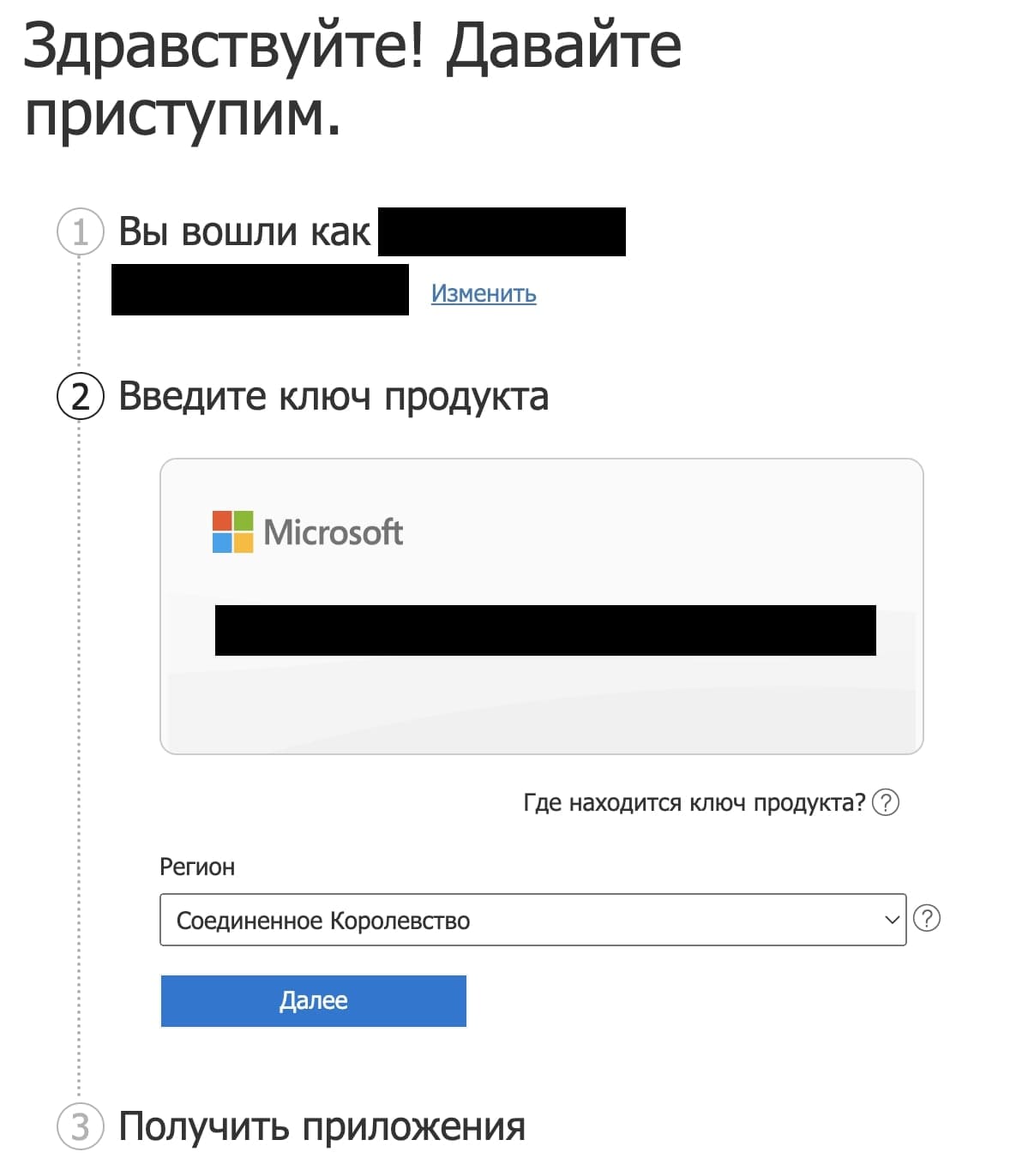 3) Совершаете автризацию под Вашей учетной записью Майкрософт и введите Ваш ключ.