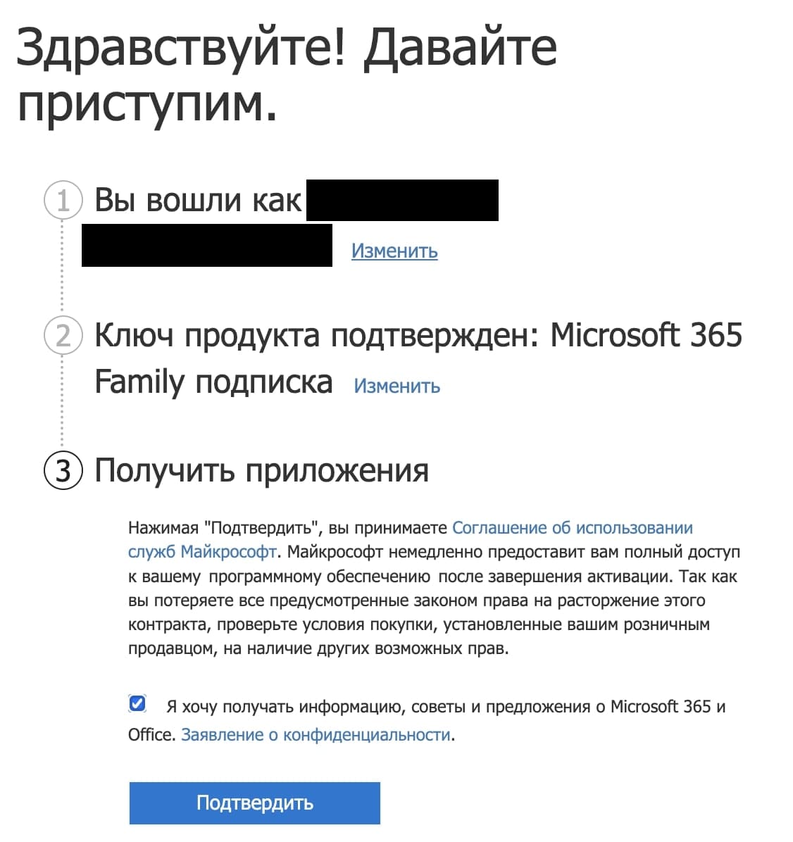Рассмотрим как активировать подписку Microsoft 365 для Windows или Mac.