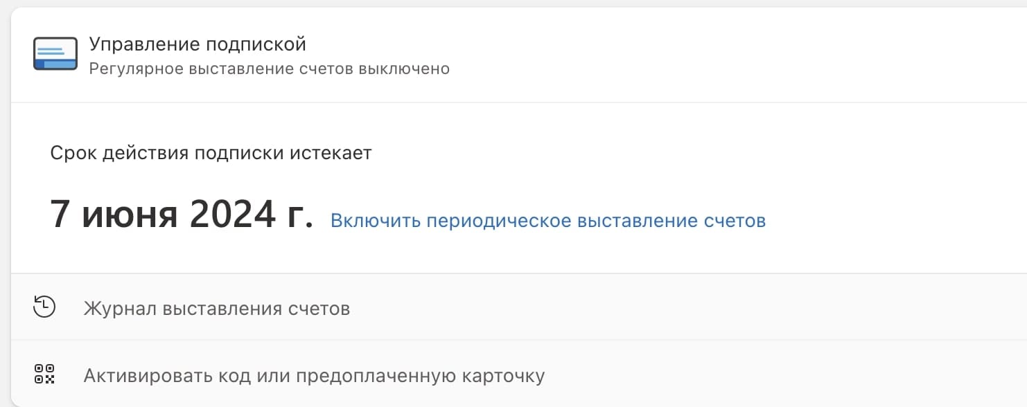 – Отключаем регулярное выставление счетов, т.к прием платежей непосредственно на сайте Майкрософт для жителей РФ сейчас недоступны.
