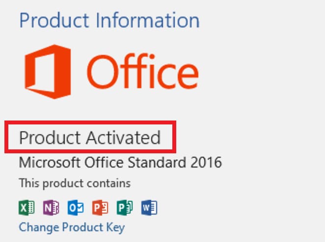 After activation, restart the Office application and check the activation in the same menu. It should indicate that the product is activated.