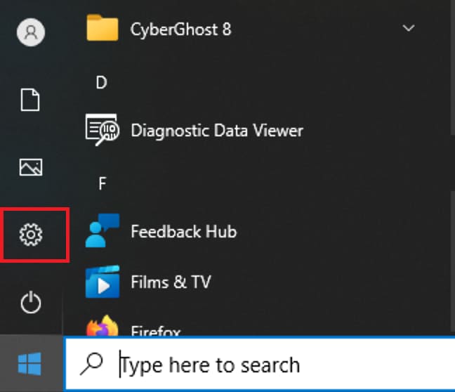 2) Open the Start menu => Settings
