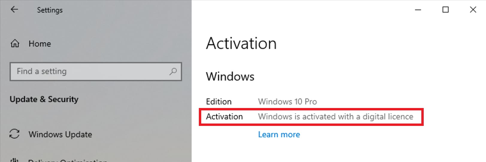 6) If everything went well, you can see that your Windows 10 is activated!