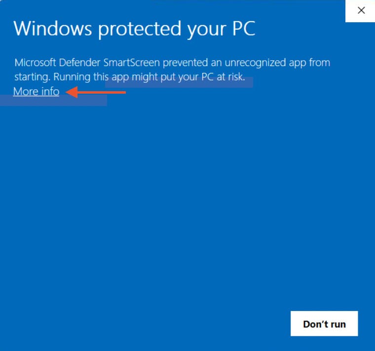 2) Next, click “More info” as Windows security by default tries to prevent the execution of any .bat file.