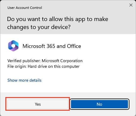 4) Allow this application to make changes, click “Yes.”