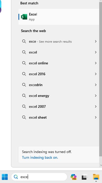 6) After the installation is complete, go to “Start” and search for any Office product, in our example it is “Excel”. Open it by double-clicking.