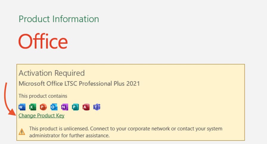9) Click on “Change Product Key”.
