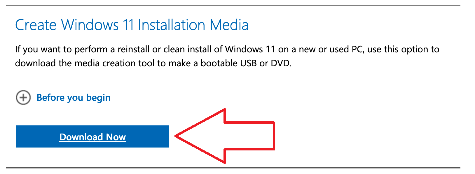 2) Go to the Microsoft website and download the utility to create the Windows 11 installation media.