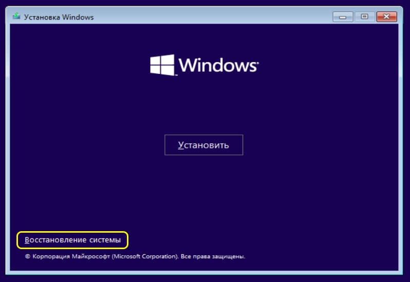 2. Загрузитесь с неё (как загрузиться с флешки можно узнать в нашей другой статье), выберите «Восстановление системы» внизу слева на втором экране.