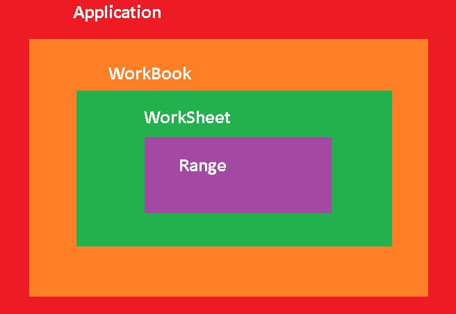 Сначала рассмотрим архитектуру объектной модели документа Excel, которая состоит из следующих уровней представлений: