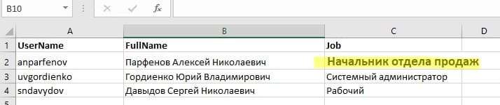 Вы можете изменить значение любой ячейки в книге Excel. Например, чтобы изменить значение должности пользователя в файле: