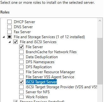– Open Server Manager -> File and Storage Services -> File and iSCSI Services and install the iSCSI role.