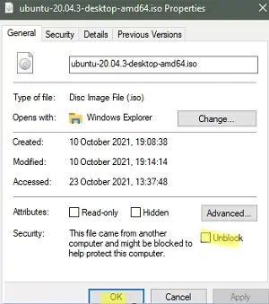 If the ISO file was downloaded from the internet, unlock it through its properties. On the General tab, check the Unblock checkbox. Then try mounting the ISO image again.