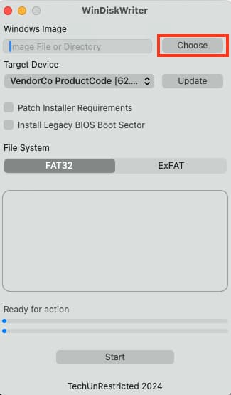 2) In the “Windows Image” section, click “Choose” and select your downloaded Windows ISO image.