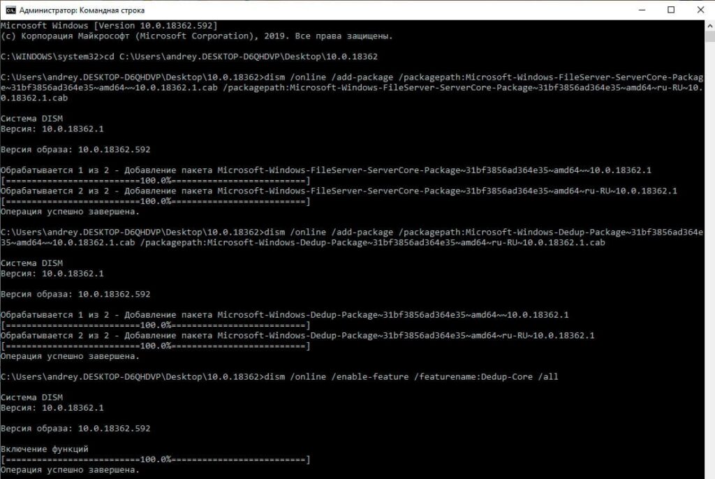 dism /online /add-package /packagepath:Microsoft-Windows-Dedup-Package~31bf3856ad364e35~amd64~~10.0.19041.1.cab /packagepath:Microsoft-Windows-Dedup-Package~31bf3856ad364e35~amd64~ru-RU~10.0.19041.1.cab