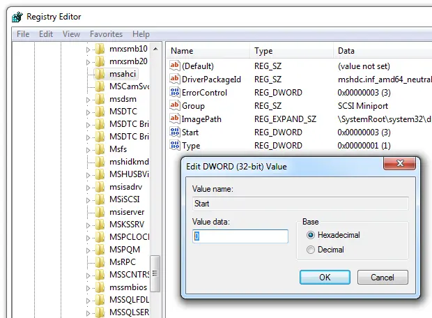 Method 3: Enable AHCI in Windows 7 via Registry