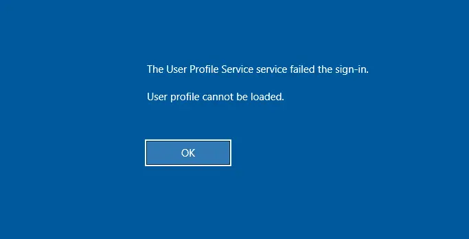 The User Profile Service failed the sign-in. User profile cannot be loaded.