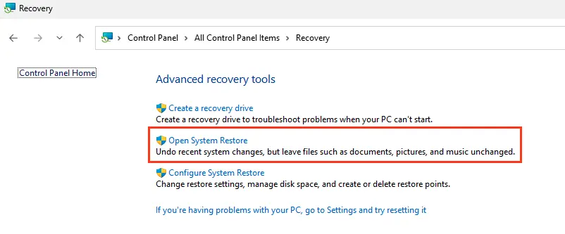 If System Restore points are enabled, you can revert the system to a previous state when the error did not occur.