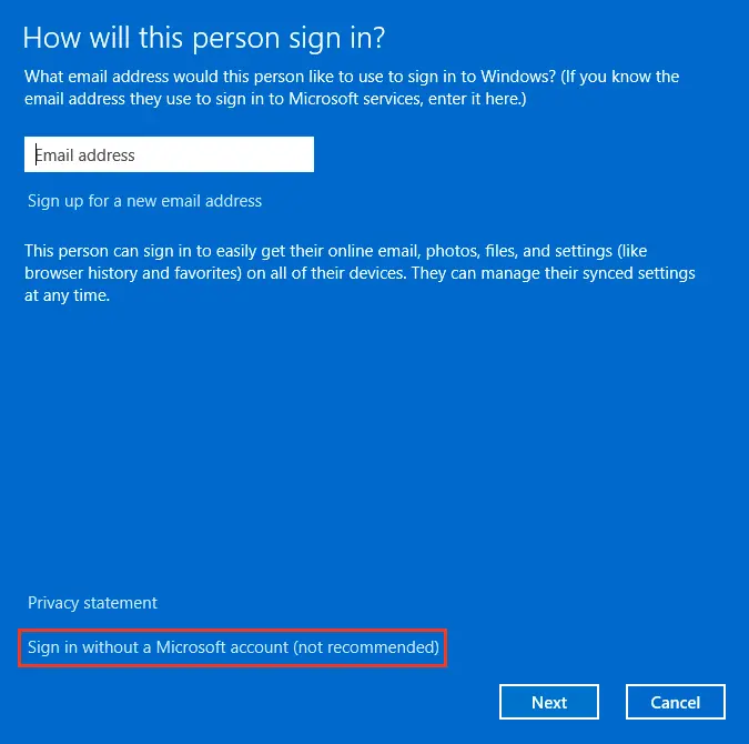 If the error occurs during a user’s first sign-in, the issue may be due to a corrupted NTUSER.DAT file in the Default profile. This file contains settings loaded into the user’s registry. If it is corrupted, the system cannot create a new profile.