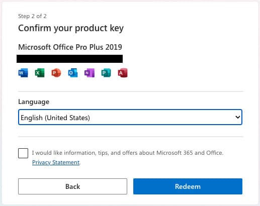 3) Next, you will have a product key confirmation, click “Redeem”.