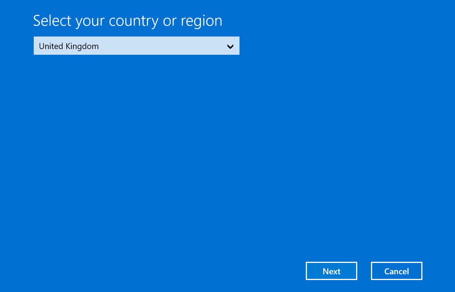 5) Next, you will see a window with the choice of your country of location, for example, from the drop-down menu we select “United Kingdom”. (You choose your location) Then click “Next”.