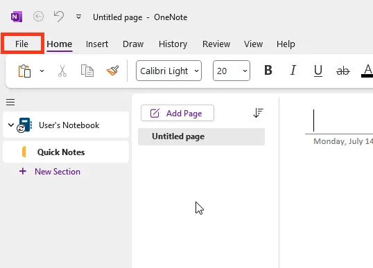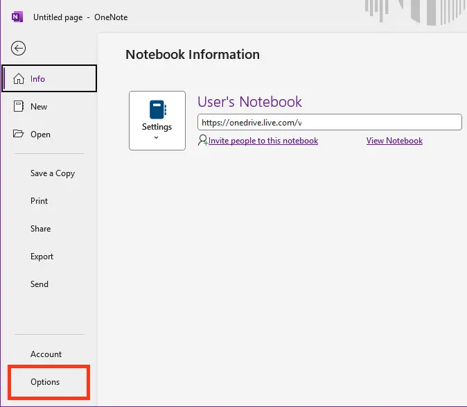 2. Open OneNote and go to File > Options.