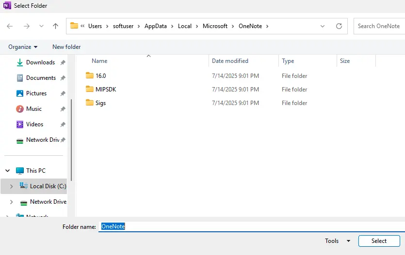 Creating a Manual OneNote Backup
