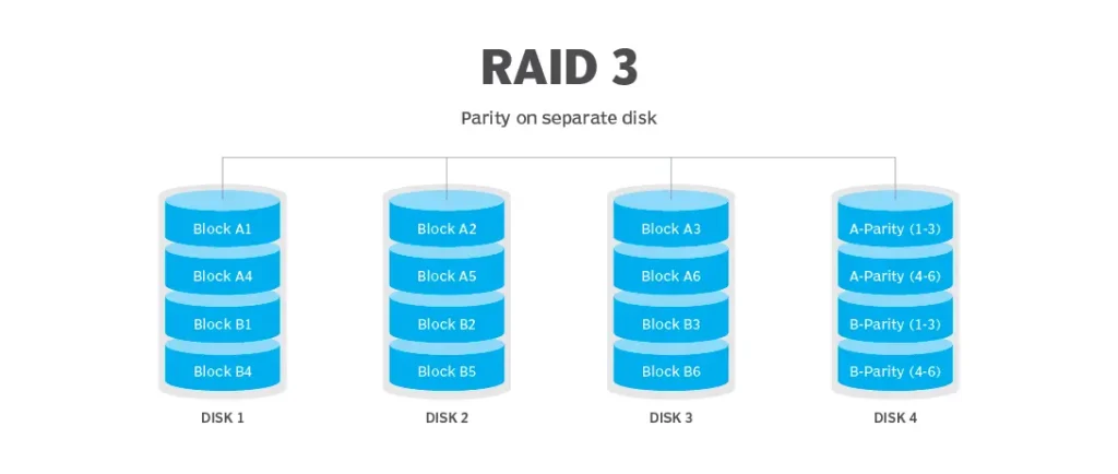 – Parity disk bottleneck: The dedicated parity disk can become a performance bottleneck, especially during intensive write operations.
