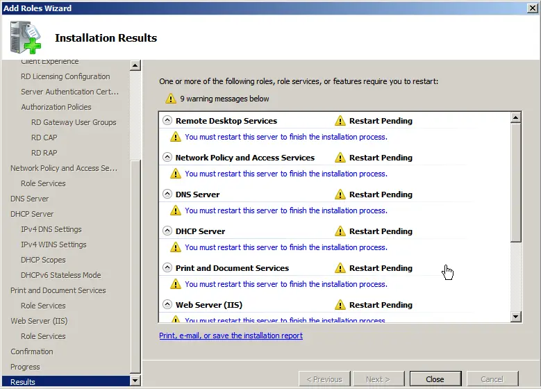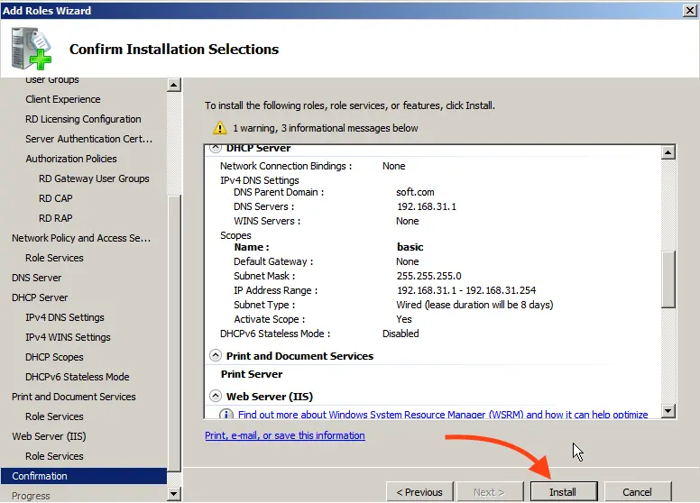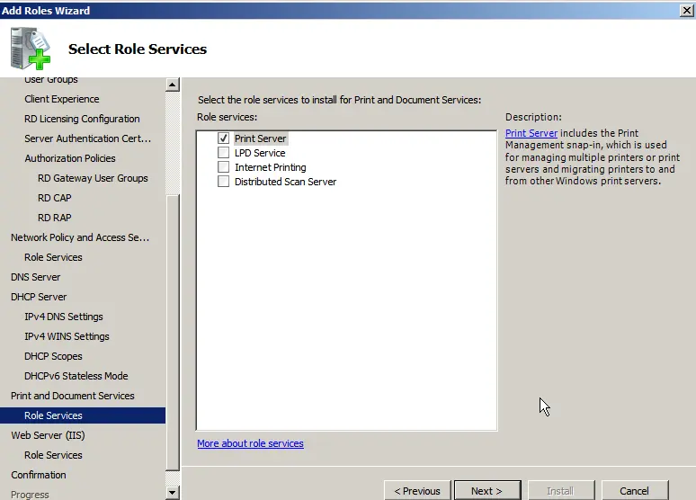 If you selected the print service during role installation (if needed), also select “Print Server” during the service installation.
