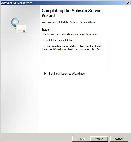 Complete the license installation wizard. If everything is successful, the following window will appear.