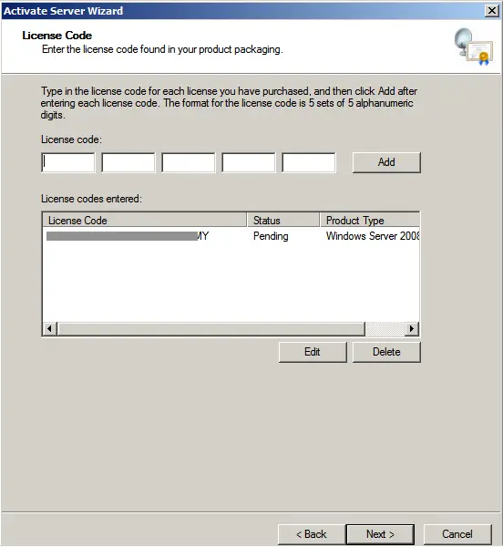 Afterward, you will see that the server is added but not yet licensed and is in a pending state.