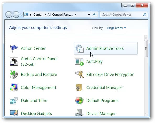 — Now, return to the control panel and go to “Administrative Tools”.