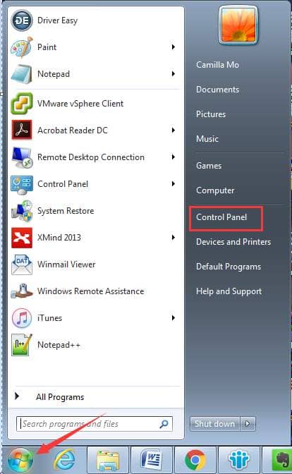— Click on “Start” => “Control Panel”.
