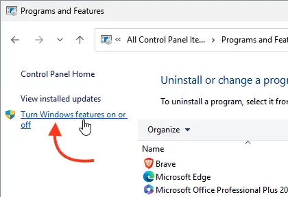 Then navigate to Programs and Features => Turn Windows features on or off, or run the command optionalfeatures.exe, and select Windows Sandbox from the list of Windows features.
