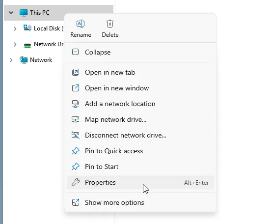 2. Select Properties.