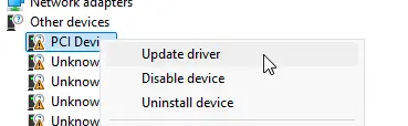 4. Right-click the unknown device and select Update driver.