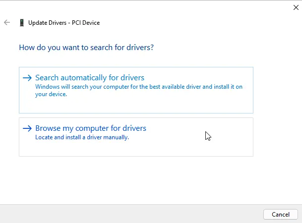 5. Choose Browse my computer for drivers.