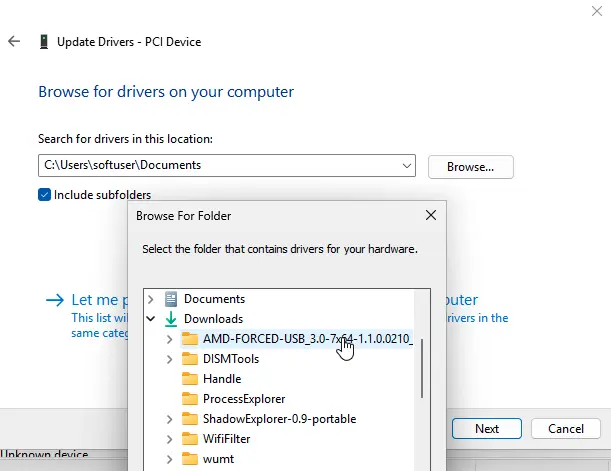 6. Specify the folder where you extracted the driver and confirm the installation.