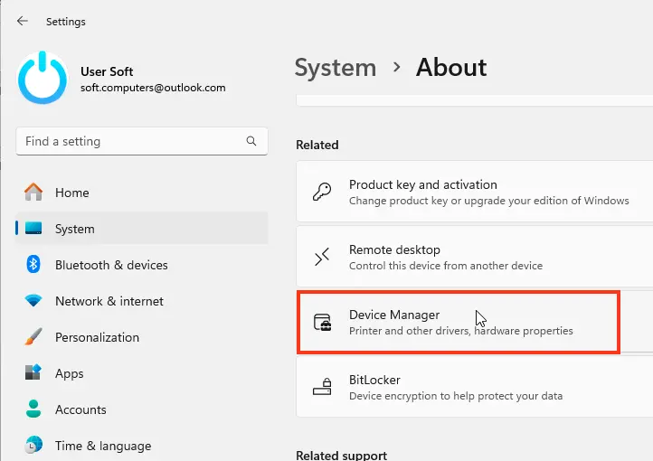 3. In the left menu, click Device Manager.