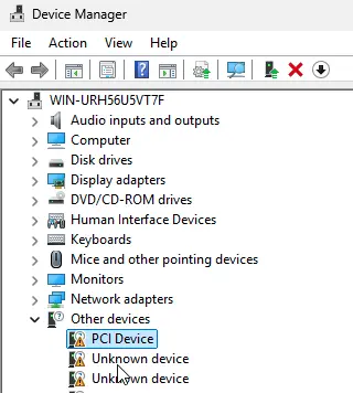 In Device Manager, you will see a list of all connected devices. Devices without installed drivers will be marked with a yellow exclamation mark icon. Locate such a device.