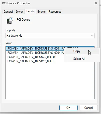 1. Copy the hardware ID.