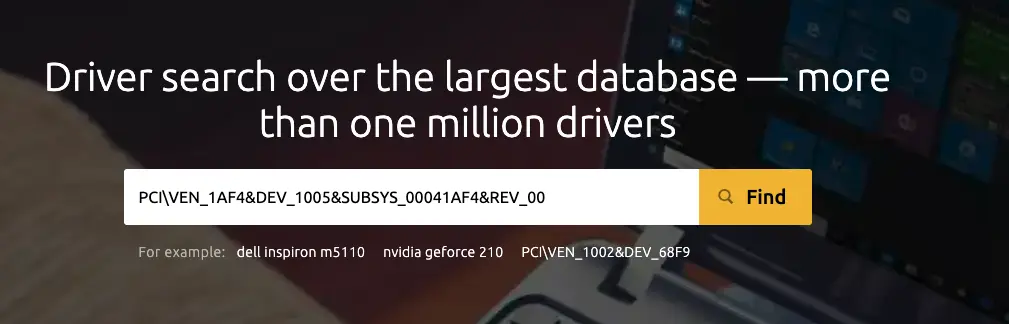 4. Paste the copied hardware ID into the search bar on the site.