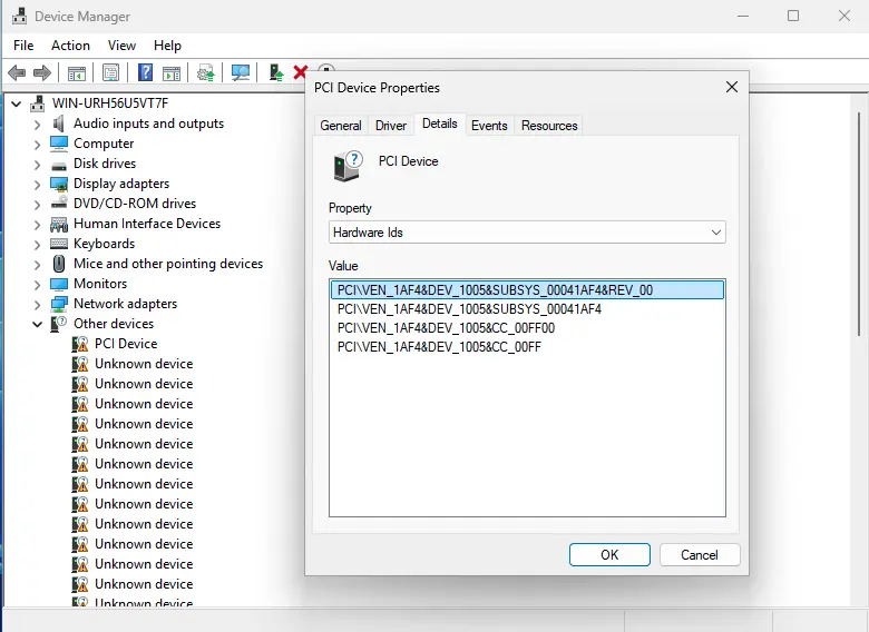 2. If Windows does not recognize the device, find its identifier (VID and PID) in Device Manager under the device’s properties (Details tab, Hardware IDs property). Search for the driver online using the ID.