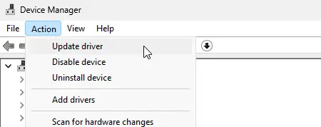 If no devices are listed, perform a Scan for hardware changes via the Action menu in Device Manager.
