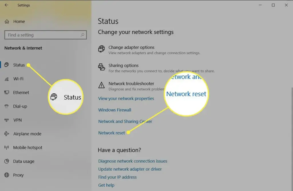 To reset network settings and the network stack, run the following commands in an elevated Command Prompt: