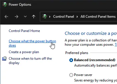 2. Select Choose what the power buttons do.