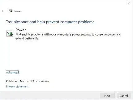 7. Run the Power Troubleshooter: