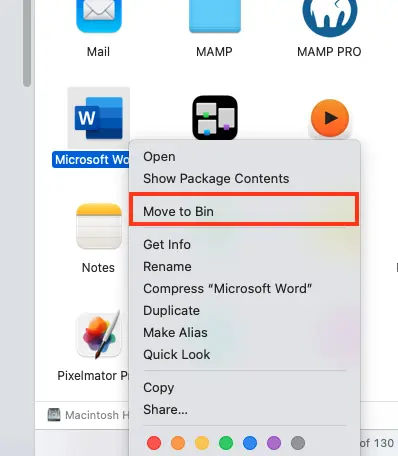 4. Additionally, remove all Office applications. Go to Finder > Applications and move them to the Trash.