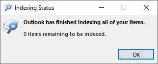 If you recently added a new mailbox or PST file, wait for indexing to finish. If indexing runs for a long time with no progress, the Outlook index may be corrupted.
