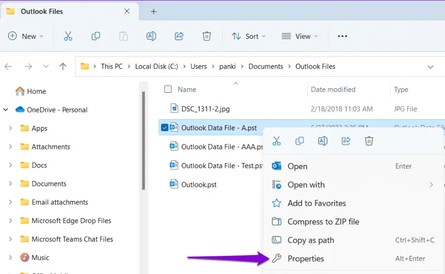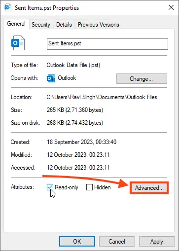 6. Check OST/PST file properties: