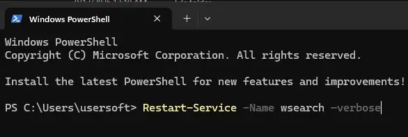 7. Restart the Windows Search service via PowerShell: